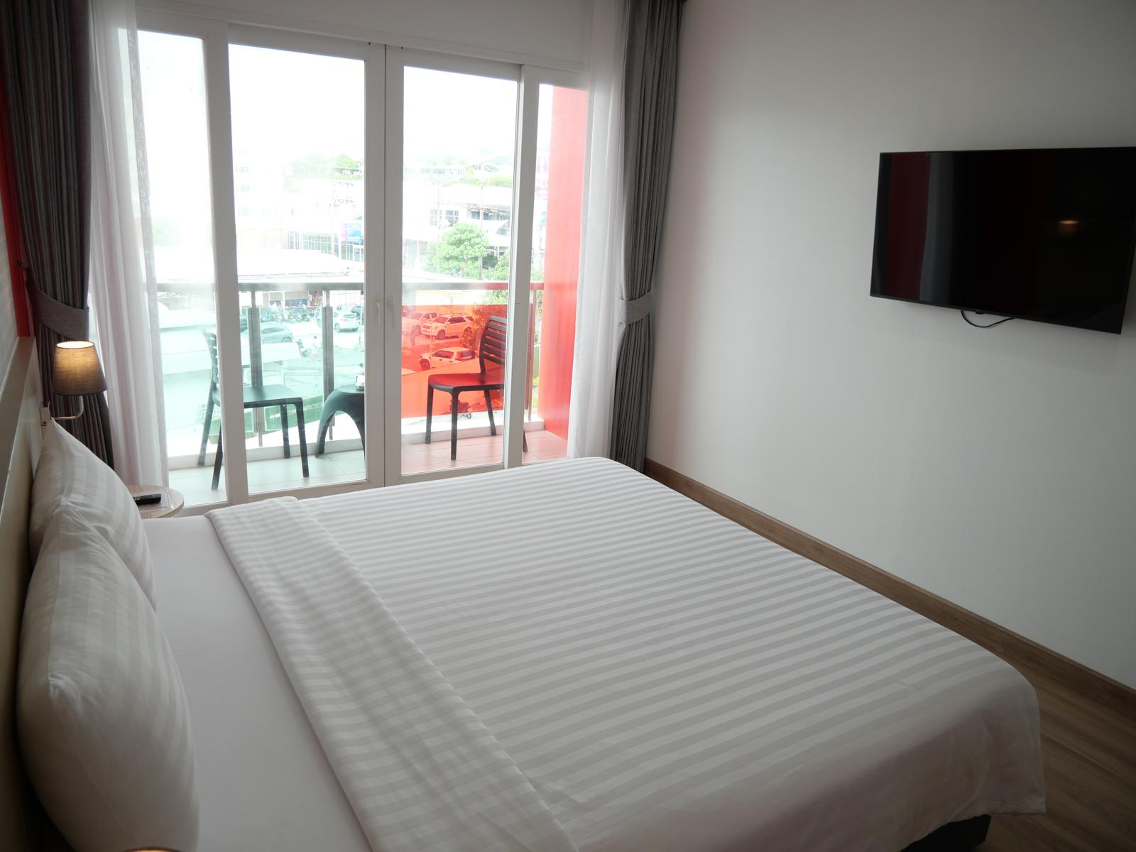 Indulge in a modern stylish room decorated in a vibrant essence red tone color, which gives a light, internal cheer-up feeling will make you feel comfortable during your stay in Patong.